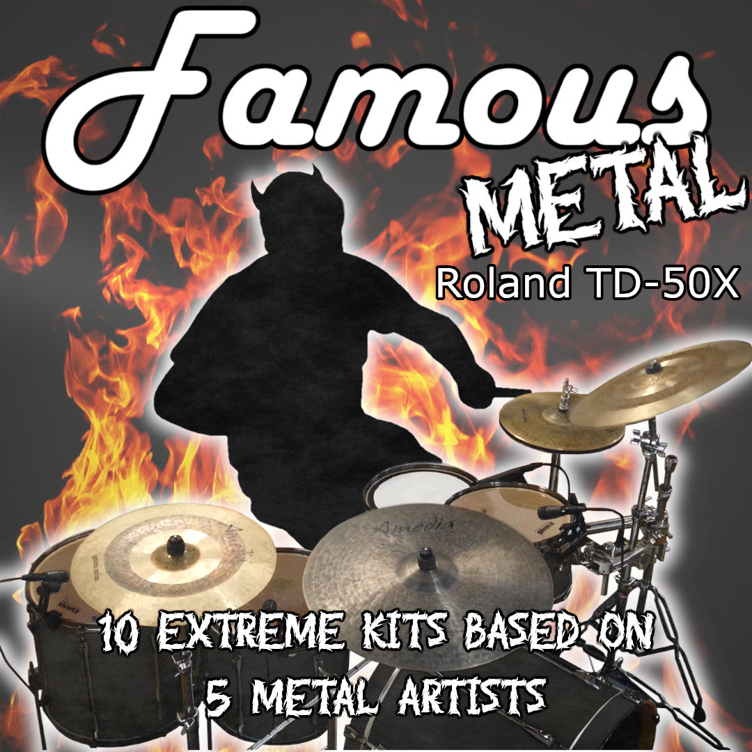 Famous: METAL for the Roland TD-50X module is a collection of 10 EXTREME kits based on 5 of your favourite metal artists. Each kit has been extensively referenced to the source material and includes hard-hitting acoustic samples to take their sound to the next level!