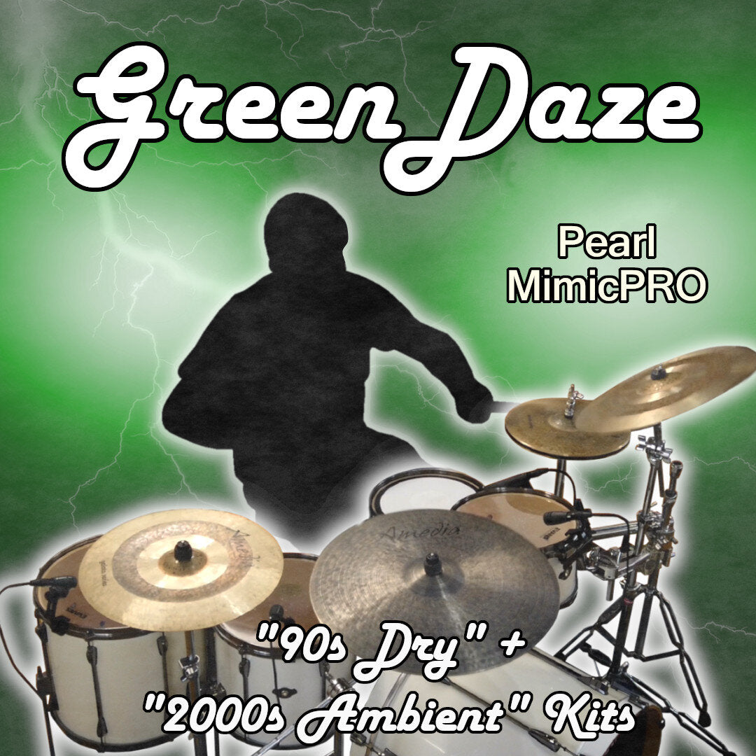 These kits reference two popular albums by the band Green Day. GreenDaze A is a more "dry" mix with a smaller, "studio" style ambience, low and punchy toms, a tight kick drum and a 90s punk snare. GreenDaze B is much more ambient with a more open kick drum, higher snare and tom tunings and a much larger ambience.