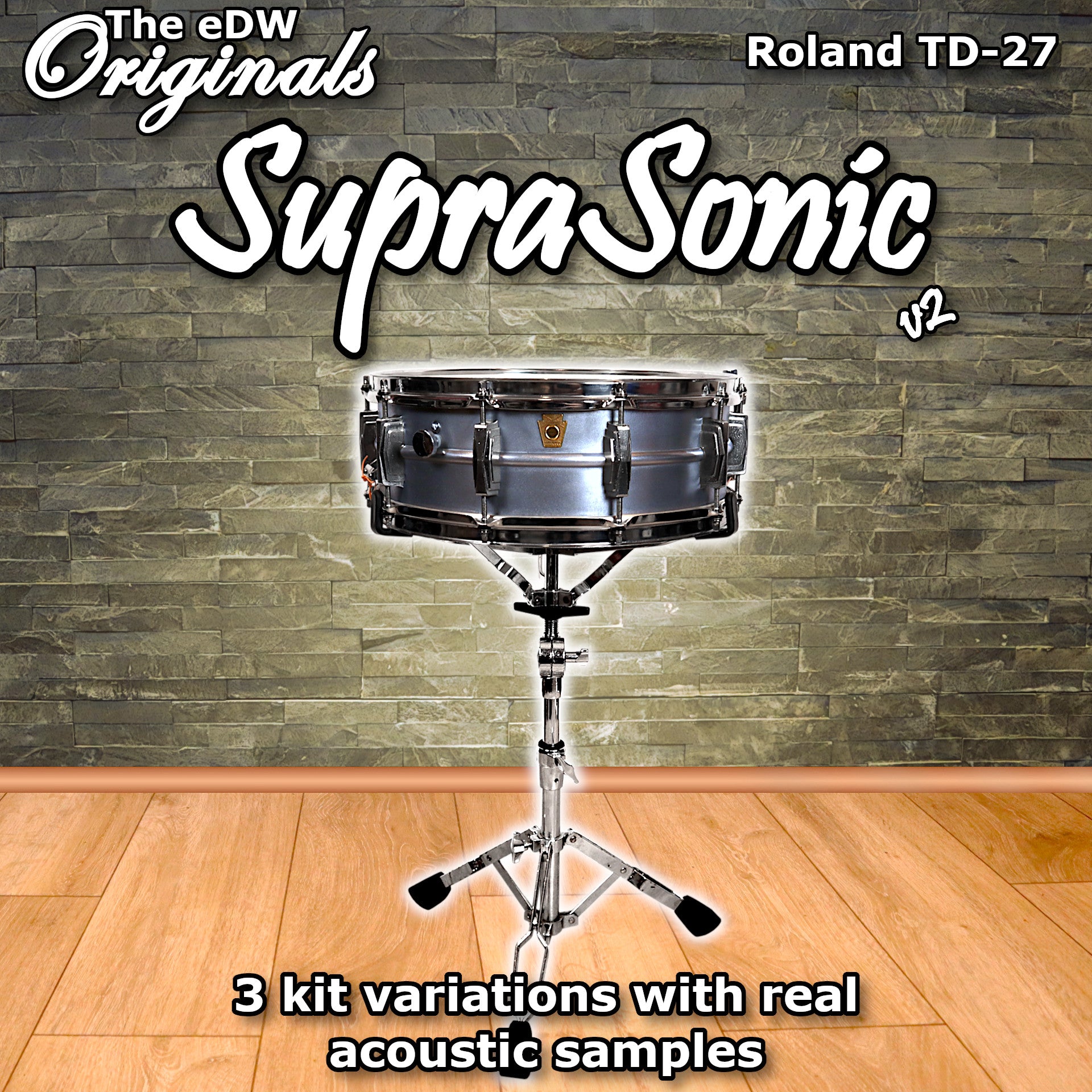 SupraSonic contains 3 custom kits for your Roland TD-27 module with real acoustic samples taken from a Ludwig 14x5 LM400 Supraphonic snare drum, recorded in a slated drum room. The room’s hard, reflective ambience colours the sonic image with a unique character that breathes life into these vintage-style kits!
