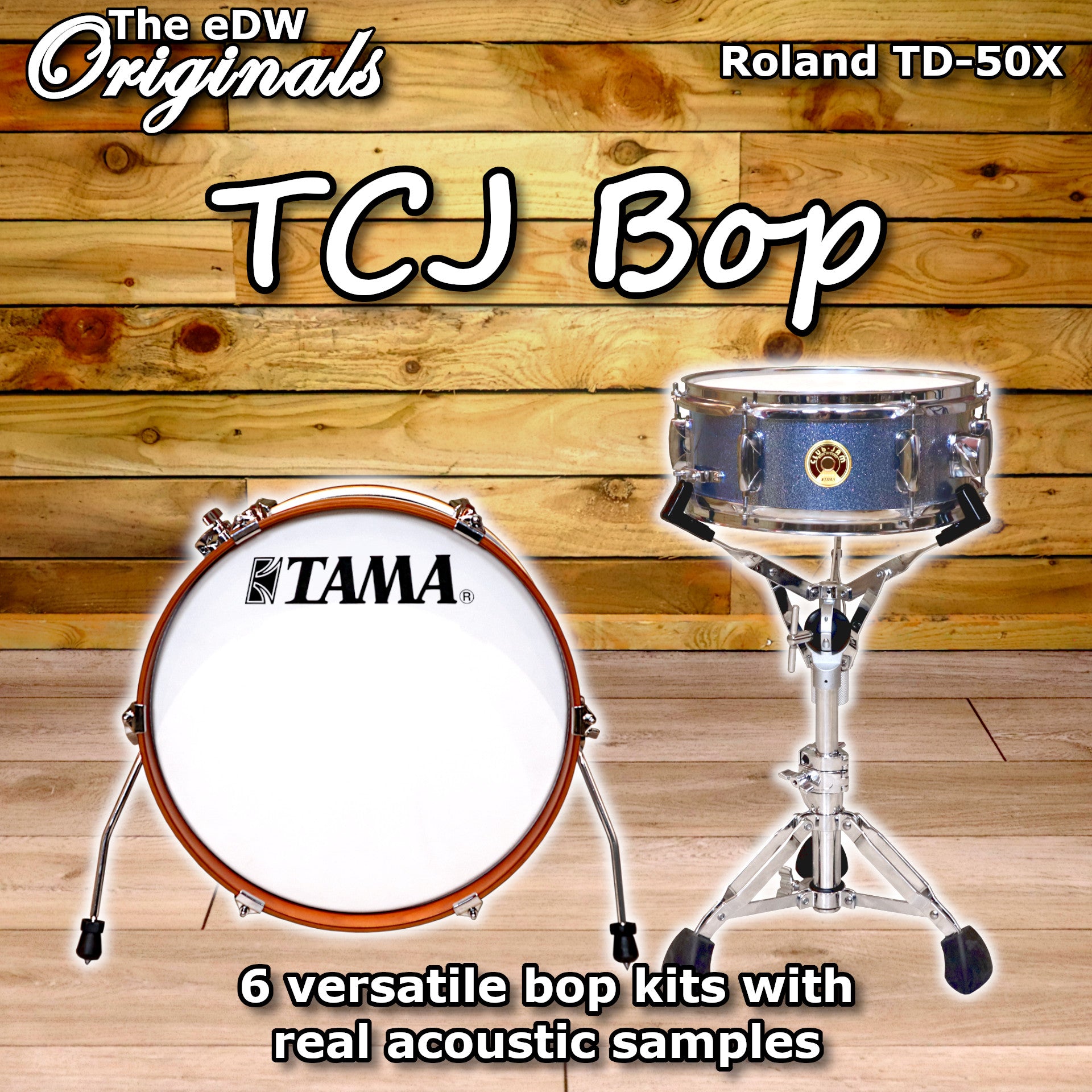 TCJ Bop for the Roland TD-50X module is a collection of 6 high quality, versatile bop kits with real acoustic samples taken from a Tama Club Jam kit. The 12x5 snare and 18x7 bass drums were sampled in 2 tunings, with each tuning having 3 styles of kit to choose from -
