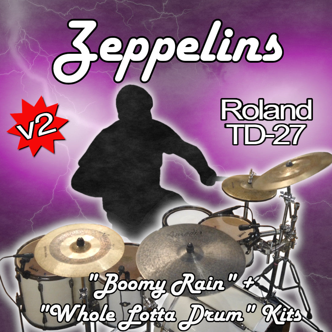 These kits reference two popular Led Zeppelin tracks. Zeppelins A has a large and wild ambience, huge boomy kick drum and ringy snare, while Zeppelins B has a smaller but ambient feel, a more tamed kick drum and a punchier, less ringy snare.