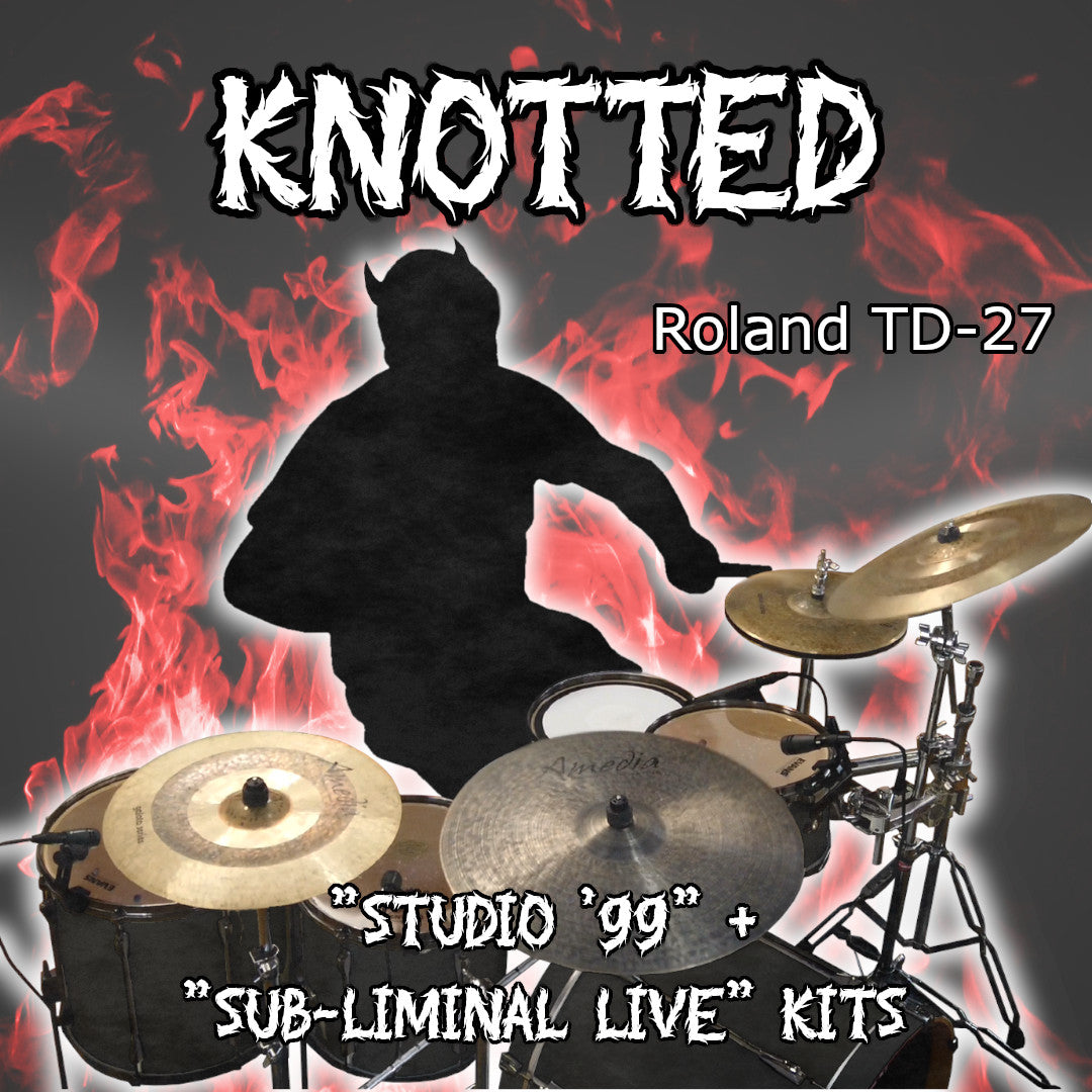 These kits reference two classic eras of a popular metal band. Knotted A has an old-school, wild feel with a ringy snare, slappy kick drum, thumping toms and a medium sized studio ambience whereas Knotted B takes a live “stadium” approach to an iconic album sound. Both kits come with real acoustic snare and kick samples to boost their sound!